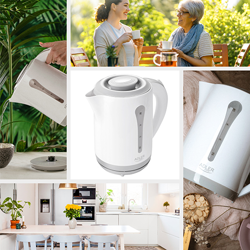 Великий електричний сімейний чайник, що дозволяє ефективно закип’ятити воду для чаю на 8-9 осіб завдяки потужності 2200 Вт. Оснащений індикатором рівня чистої води, автоматично вимикається під час закипання. Замок також не дозволить вам увімкнути порожній чайник, що дозволить заощадити електроенергію та забезпечити вашу безпеку. Осадовий фільтр забезпечить належну якість води. Для зручності він оснащений поворотною основою та плоским дном. Сучасний, зручний, вміщує до 2,5 літра води. Доступний у класичному білому кольорі.