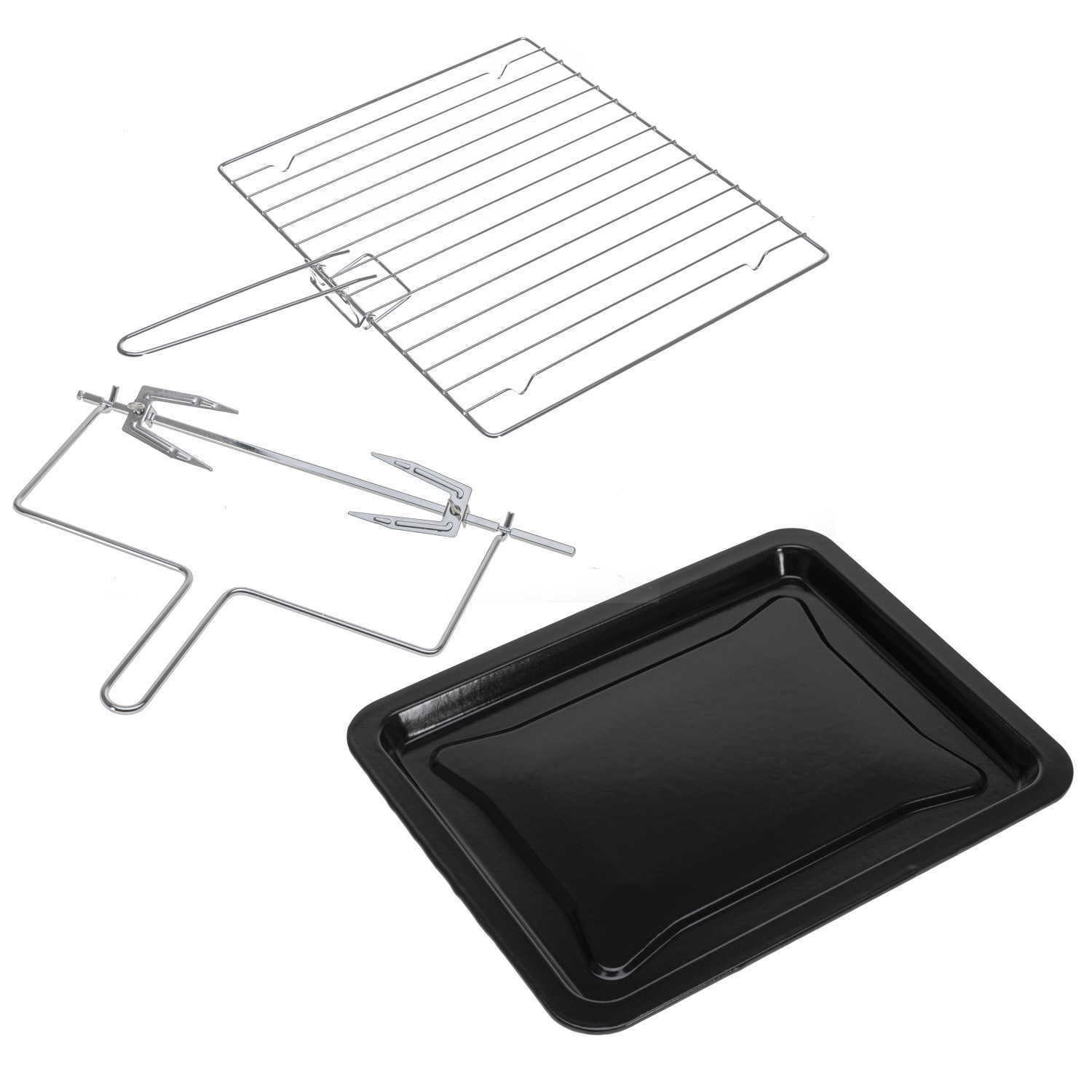 - – Верхній та нижній нагрів з функцією циркуляції повітря та грилем на вертелі