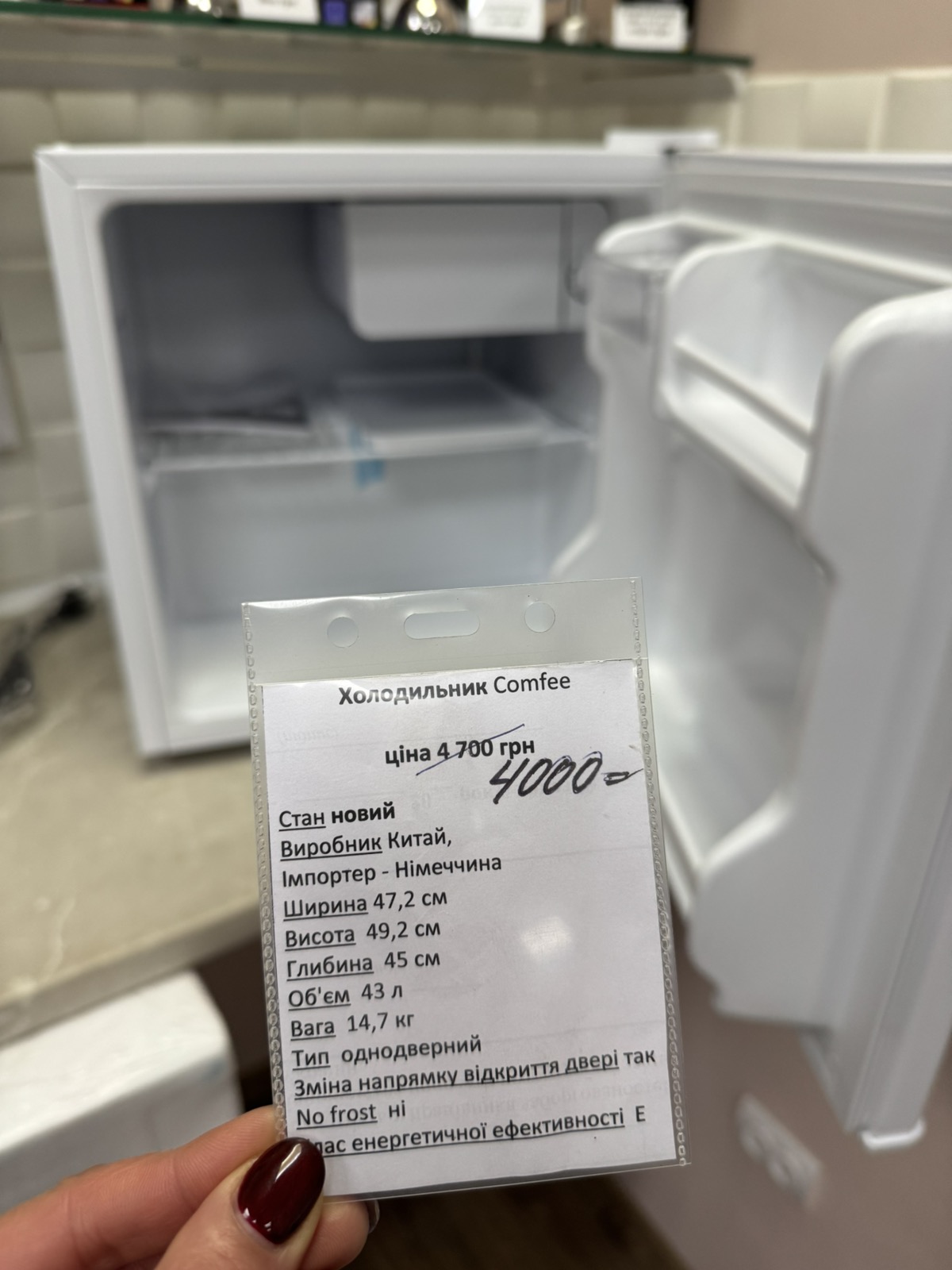 Об’єм холодильника (л): 43;